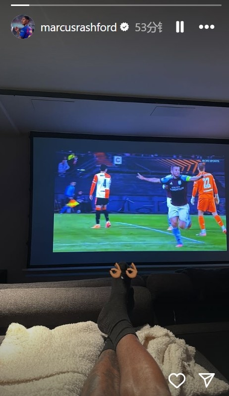 10月3日讯 不久前,拉什福德更新了社交媒体,晒出了自己收看维拉欧职业联赛 事 的照片。