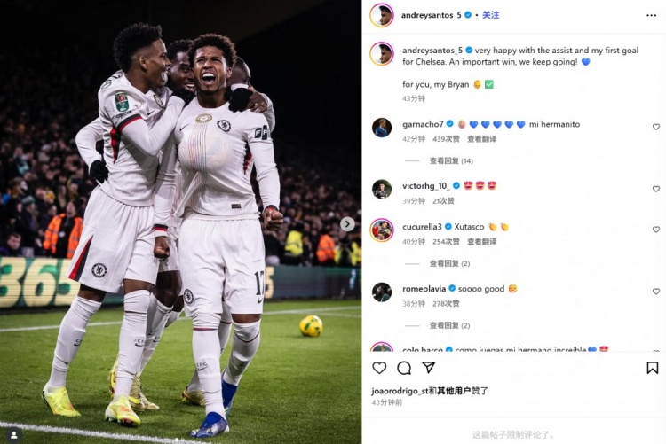 他也在赛后通过社媒晒出自己将皮球套在身前模仿孕妇的庆祝照c罗 西甲,并配文:“非常开心能送出助功 ,并且斩获我在切尔西的首粒得分 。这是一场重要的获胜 ,我们继续前进!💙献给我的布莱恩👶✅”