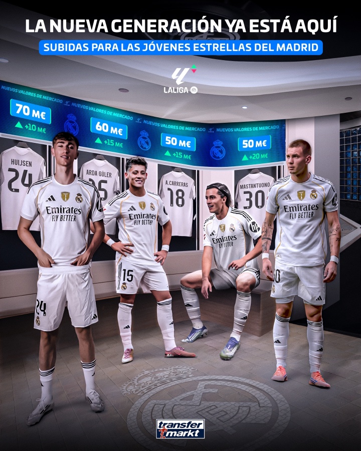 文章表示,皇马今夏在多名年轻球身上花费重金,也引发热议。然而,赛季开始不久后,数据便开始证明管理层的决策是正确的:根据德国转会市场最新估算,球队新援的身价已出现显著提升。